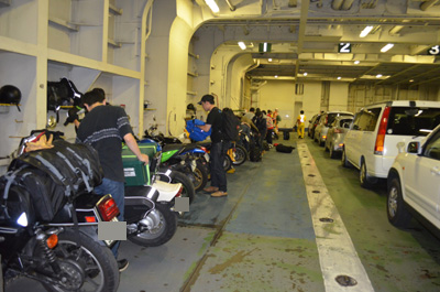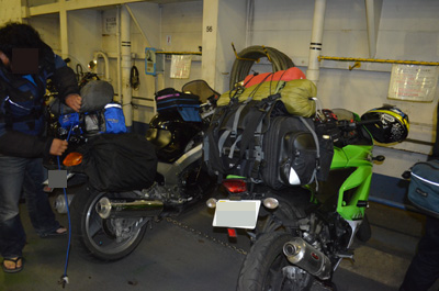 フェリーがまもなく舞鶴に到着する。車両甲板に降りてバイクのナンバープレートをみると大体が関西圏や中京圏。近くて羨ましい。
