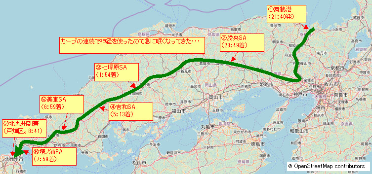 吉和SAを出発して順調に山陽自動車道と合流して美東SAまでやってきた。時間は7時前。2時間寝たおかげでほとんど眠気なくここまで順調に走ってくることができた。北九州まではあと80キロ強。もう少しだ。