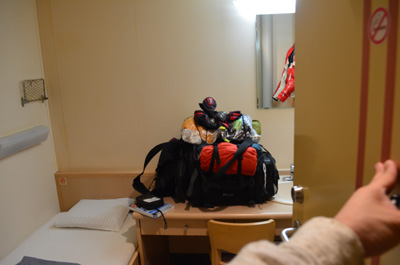 利用客が大勢いるせいか、受付後、係員にすぐに乗船してくださいと指示を受けて早々に船に乗り込む。泉大津行きの2等指定Aは神戸行きと違って完全個室なのが良い。(神戸行きの2等指定Aはベッドスペースが上下で共有となっているので1部屋を2人で分割しているイメージ)