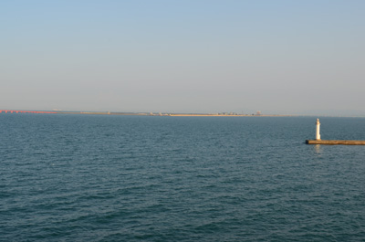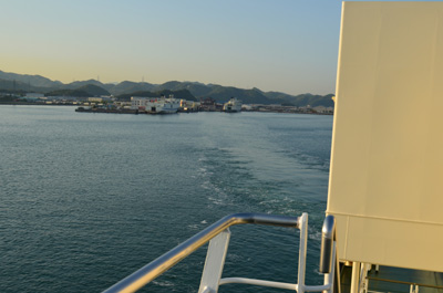 | 17時半になりフェリーが定刻通り出発する。最初フェリーが後ろ向きで進んだあと、方向転換をせずに前向きに進むことを実はこのとき初めて知る。 |
