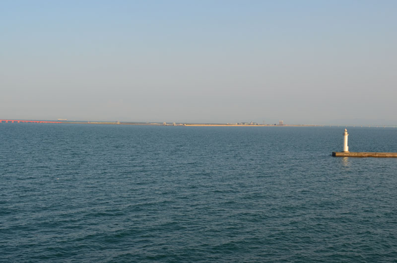 向こうに北九州空港が見える。関空と同じく海上空港。福岡空港と異なり利便性が悪いので利用度はイマイチ。個人的には若松側(日本海側)の方が良かった。 |