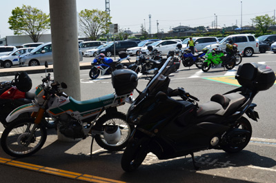 腰が抜けそうな荷物を頑張ってシートにセットして、ナビを静岡の三保の松原にセットして出発準備をする。ライダーの数は思ったほど少なくて5~6台ほど。関西のナンバーばかりだ。