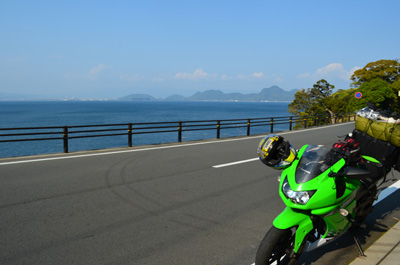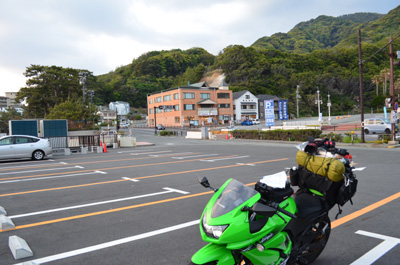 Ninjaの前で今後のルートを確認していると、「北九州からですか?私も実家は北九州です」と40歳過ぎと思われる人から声を掛けられる。その人は豊川ナンバーのハーレーで焼津に仲間と海鮮丼を食べに行くらしい。