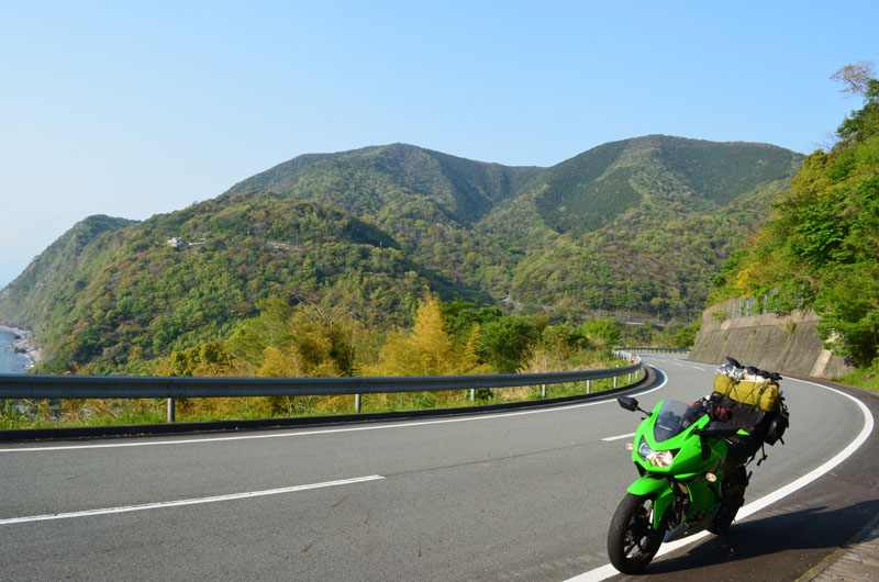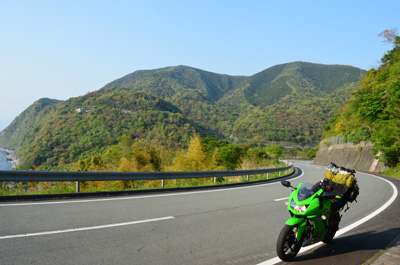 | 伊豆半島は海あり、山ありの道が続いて、アップダウンも激しいのでツーリングスポットとしてはもってこいの場所だ。四国の佐田岬に続く道や足摺岬に続く道に似ている。この辺りになるとライダーともポツポツと擦れ違う。 |