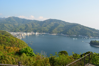 出逢い岬からの景色。沼津市戸田地区が一望できる。戸田とかいて「へだ」と読むらしい。ちなみに山口県には戸田とかいて「へた」と読む駅があるのを知っていたので驚きはなかったが、普通は「とだ」と読む。 |