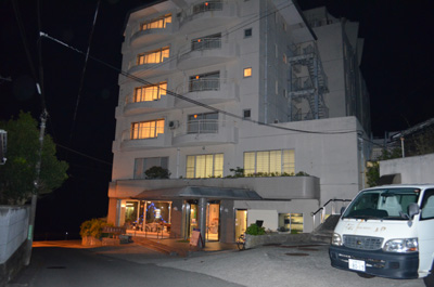 19時過ぎに下田市に到着。既に陽が落ちていて辺りは真っ暗。さっき予約したホテルは「下田海浜ホテル」というところで、単純に値段のみで選定したので概要はわからなかったが、海沿いにある温泉旅館といった感じ。