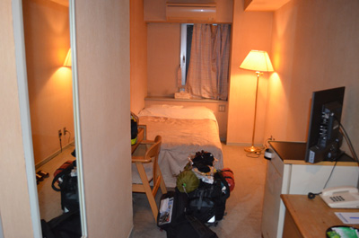 受付でチェックインして部屋に入る。ホテルは全体的に寂れた感じで値段相応といったところ。荷物が重いだけに部屋に運ぶだけでも相当の重労働。想像以上に辛い作業なので、次回ツーリングに行くときは荷物をもう少し考えねば・・・。