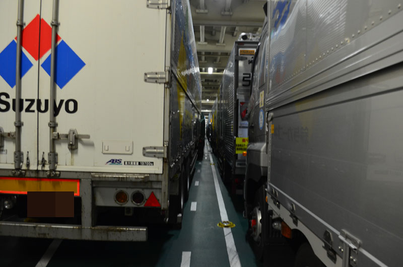 そのうちに船内放送が流れ、車両甲板に向かう。 |