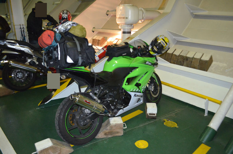 そのうちにトラックが次々と下船していき、トラックの後、バイクの下船が始まる。フェリーでのツーリングも随分こなしてきたせいか、下船時の緊張感がまったく出てこない。