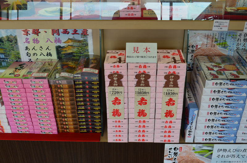 土産コーナーは定番の「赤福」や「生八ツ橋」。これを見ると関西に来たことを実感する。赤福は伊勢、生八橋は京都だが、なぜか大阪や名古屋でも大量に販売されている。(逆をいえば大阪名物や名古屋名物が思い浮かばない)
