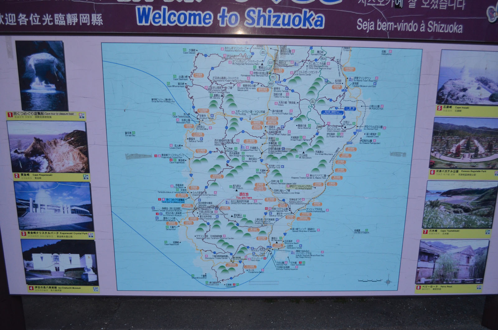静岡ICから30分ほどして三保の松原に到着。砂利道の駐車場だったのでバイクだと少し辛かった。ここに来るまでの途中の道のりは、いちご農園が多数あって、いちご好きのボクとしては少し寄ってみたかった。 |