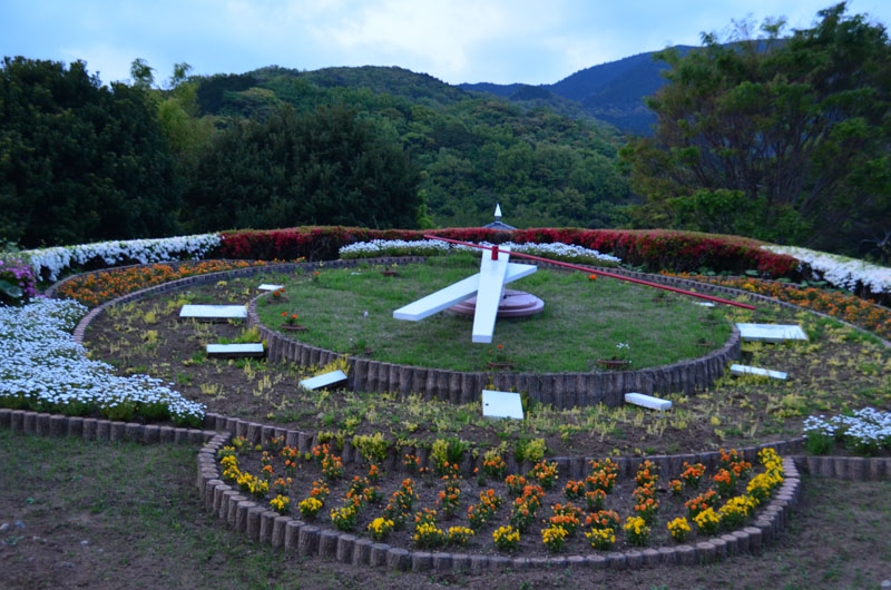 道の駅には花で象られた大きな時計が設置してある。このタイプの時計には珍しく秒針まで用意されているので、針は常に回っている。時間を確認すると既に18時半。早く下田に向かおう。 |