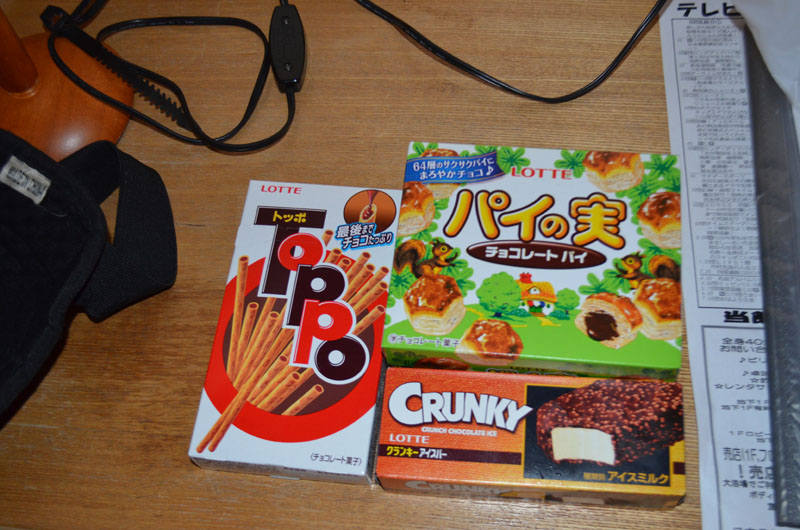 | 売店にあったのは菓子系のみ。しかもチョコレート系ばかり。昨日フェリーの中で食事の後に食べた菓子とほとんど同じという寂しさ。 |