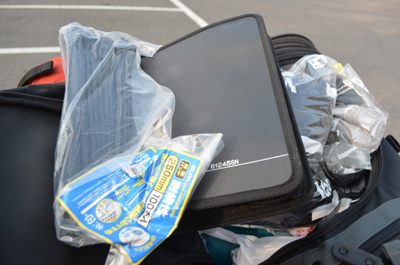| さて、Ninjaの応急処置をしよう。シートバッグから結束バンドと携帯工具を取り出す。 |