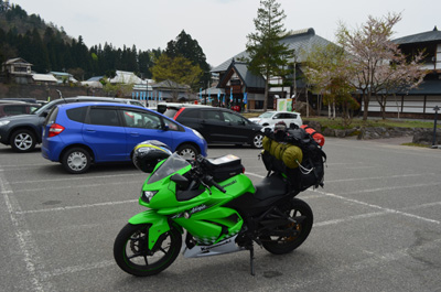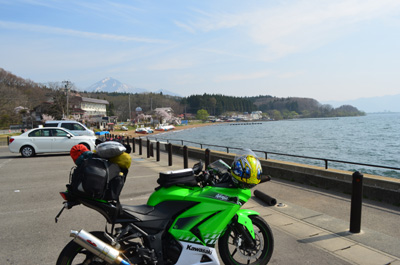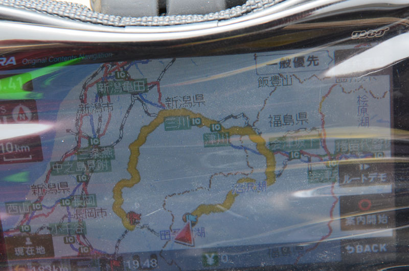そうと決まれば荷支度をしてすぐにチェックアウトする。腰が抜けそうなほど重い荷物をNinjaにセットしてナビをとりあえず東北方面にセットする。まずは猪苗代湖を目指そう。しゅっぱ~つ。 |