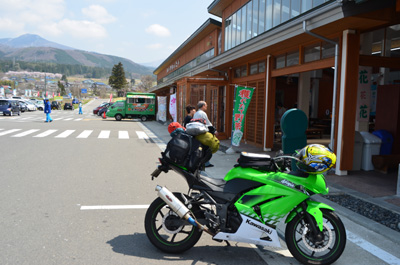 磐梯山ゴールドラインを降りてきた先の道の駅「ばんだい」にやってきた。ここで今後、どういったルートで新潟に抜けようか悩んでいると、カブから降りてきたおじいさんから、「またえらい遠いところから来たね。このバイクの排気量は?」と聞かれたので、「250ccです」と答えると、「30馬力ぐらいかの?」と核心を突いた質問が返って来た。