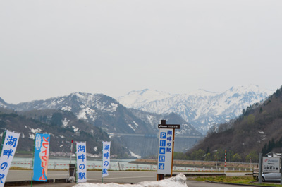 | 只見町から山に向かう途中、「通行止」の看板が出てきたので、やっぱ通行止めか!と思って躊躇しながら先に進んでみるが、とりあえず問題なく先に進める。峠をどんどん登っていき、田子倉ダムに差し掛かったとき・・・ |