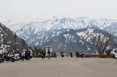 | 田子倉ダムの前にはなぜかライダー軍団がたむろしていた。皆、立ち往生していたのかも。 |