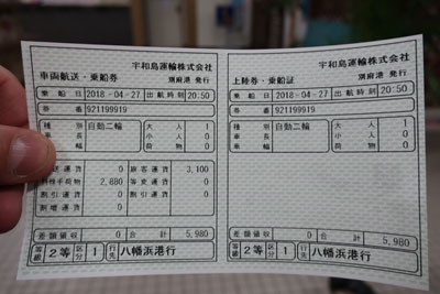 受付で切符を購入する。出航時間は20時50分。佐賀関~三崎と比べるとほぼ倍の運賃。(これを安いとするか高いとするかは人それぞれ) |
