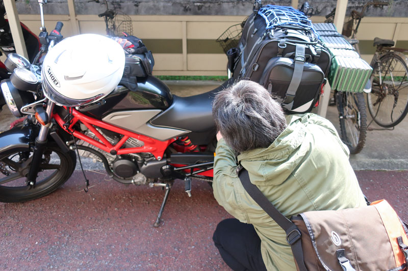 そのうちに相棒が家にやってきた。相棒も同じく午前中で仕事切り上げ。相棒は7年~8年振りのロングツーリングになるので荷物を念入りにセッティングする。