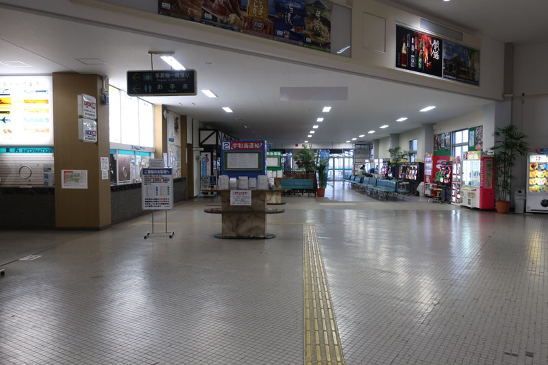 | 船内で居眠りをしていると時期にあっという間に八幡浜に到着。よく寝たよ。さて、船から追い出されるが、どこに行こうかな。 |