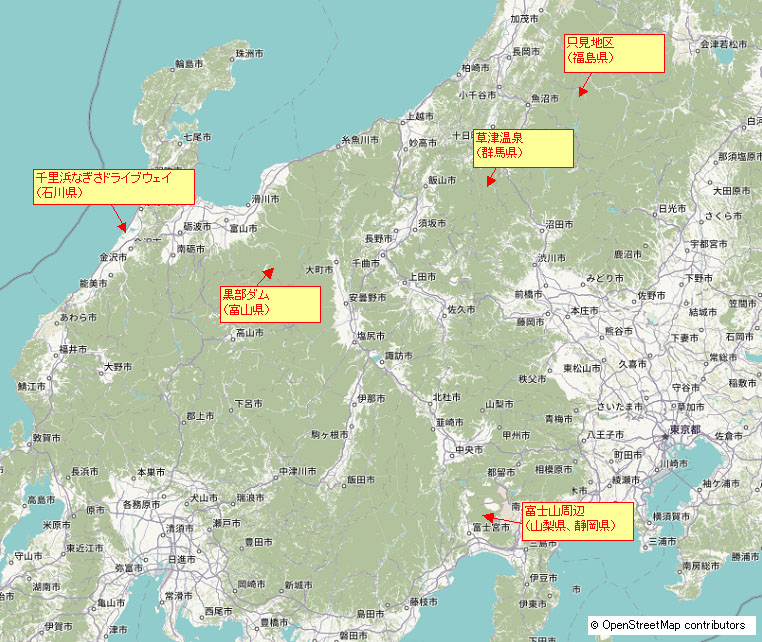 今回、行きたいところを絞り出したところ、候補は以下となったので候補を中心にルートを決めることにしました。