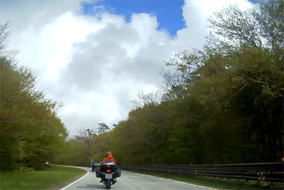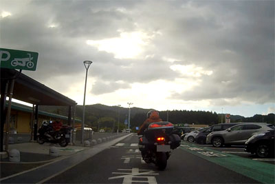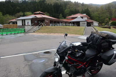 そのまま快走して美東SAへ。いつの間にか空は雲が優勢になっていて、気温もグッと下がってきた。もうすぐ5月とはいえ、太陽が出ていないと寒い。特にこの辺りは思いっきり山の中なので尚更。美東SAには福岡ナンバーのBMWバイクが1台停まっていた。 |