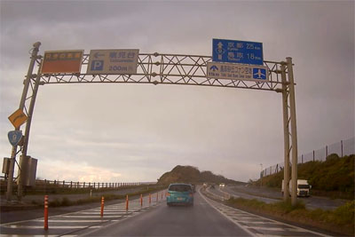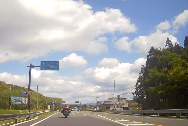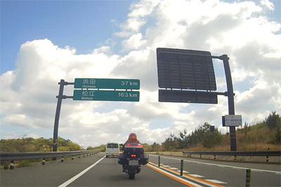 島根県に入り、津和野を超えて淡々と北上する。去年、逆のルートを走ったのでこのあたりの記憶は新しい。山陰は無料の自動車道路バイパスが所々で用意されているので、山陰は快走できる。
