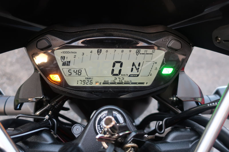 SV650のメーター周りはすべてデジタル。タコメーターもデジタルで若干違和感はあるが、ほとんど気にならなくなってきた。SV650はギアポジションがあるのがすごく便利。(これは今のバイクだと標準なんだろうか?Ninjaにはなかったので6速からギアを上げようとしたこと数知れず・・・) 平均燃費もリアルタイムで更新されるし、センサーでタンク容量を確認しているのだろうか?ABSも標準装備。うーん、凄い。