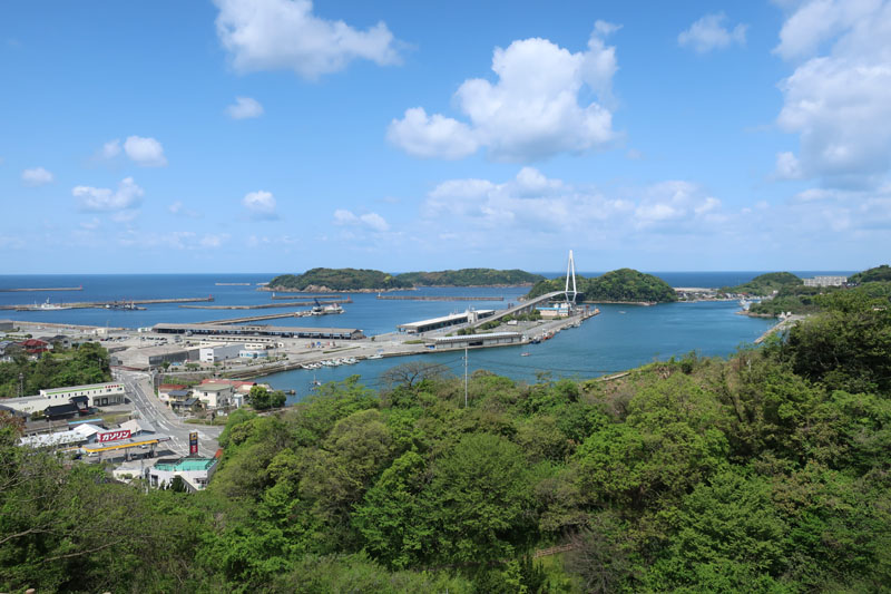向こうに見えるのが浜田マリン大橋。去年、北九州への帰り道の際に見えたのが印象的だったので、とてもよく覚えている。それぐらい、よく目立つ橋だ。
