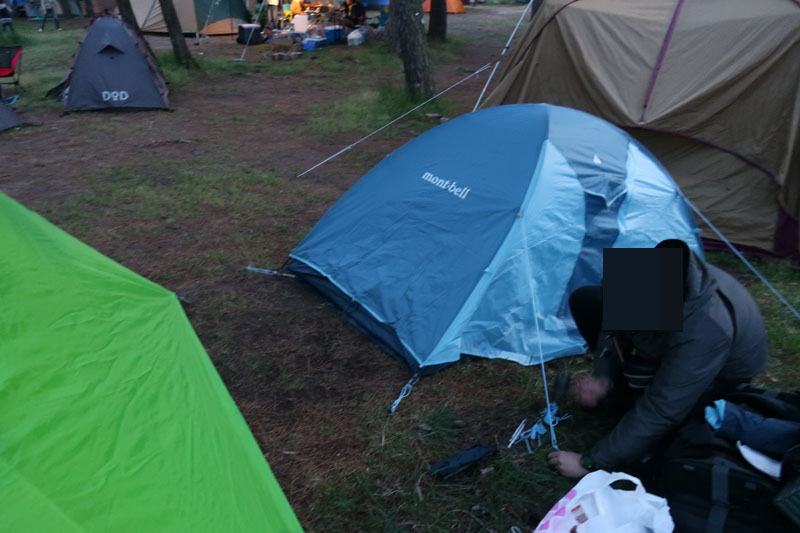 逆に何度かテントを張っているボクのほうが不格好(笑) 手先は昔から本当に不器用なのですよ。性格も大雑把だし。こういった物を組み立てる行為は本当に苦手。