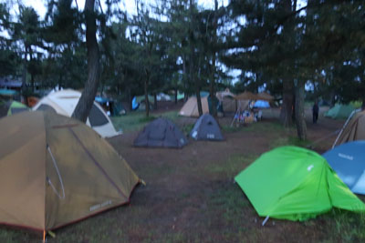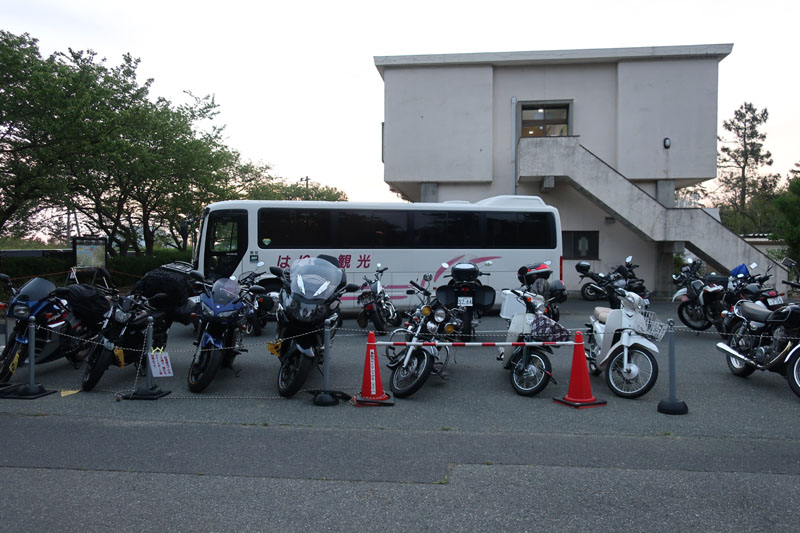 バイク置き場も満杯になっていた。富山、習志野、神戸、etc。我々以外の北九州もいた。 |