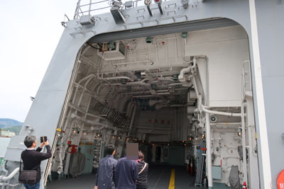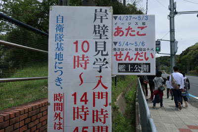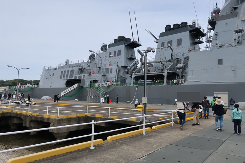 バイクを置いて皆に付いていくように奥に進んでいくと、イージス艦「あたご」の見学会をしているらしい。皆これが目当てか。当然ボクも付いていく。