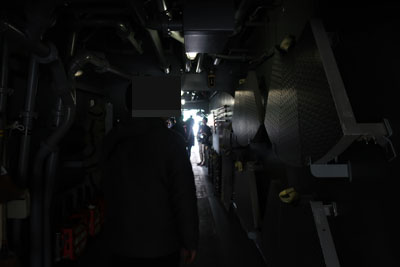 | 中は意外と狭くて、いかにも基地といった感じ。この手の一品物は砲弾1つにしてもどれぐらいの価値があるのか想像がつかない。この「あたご」の建造費は1400憶円以上するらしい。日本の平和のために役に立つことを祈っています。 |