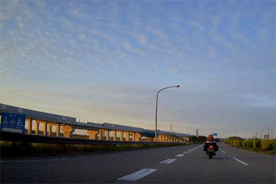 | さらに走り続けていると左横にずっと高架橋が続いており、何の高架橋か気になっていたが、あれは新幹線の高架橋ではないだろうか。北陸新幹線が開通したことで金沢のメリットは大きいと思う。でも、新幹線って運賃が高いのでプライベートでは極力使わないようにしている。 |