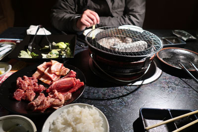 夕飯検討会議の結果、焼肉で一致。昨日からずっと海のものを食べてきたので、今日は肉ということで。血の滴る肉が食いたい!