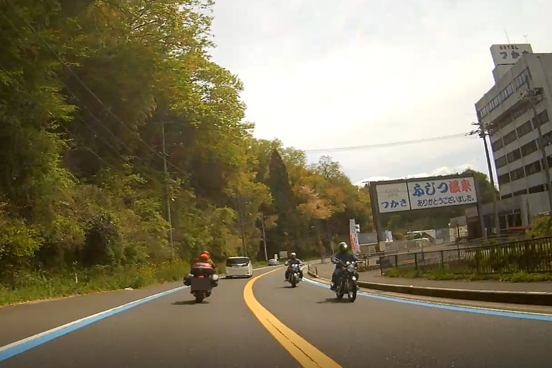 荷物を大量に積んでいるバイクも多くて、我々と同じようにロングツーリングに出ているライダーも多い。ピースサインも増えてきた。バイク特有の一目で遠出しているとわかるスタイルが風情でいい。 |