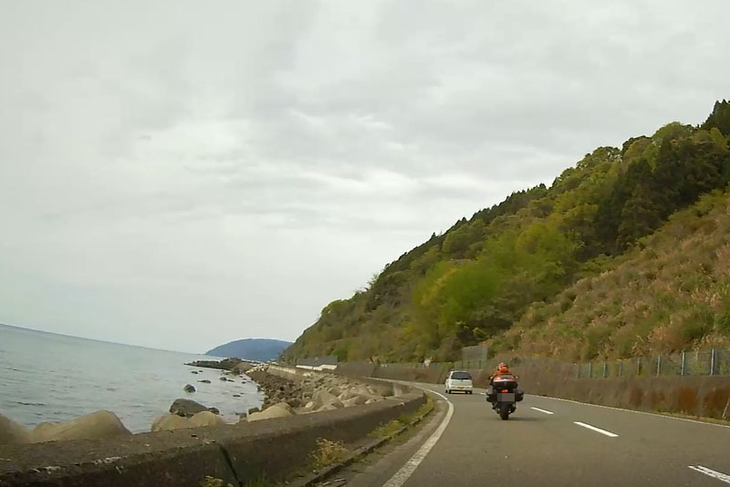 海が続いたと思ったら、漁村に入り、また海へ出るといった感じで、適度に感じのいいように景色は変わるので意外に飽きは来ずに走ることができる。しおかぜラインも過去、走ったことがある。そのときは東尋坊にいった記憶あり。
