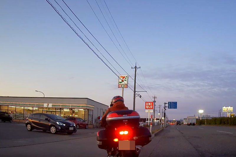 道路脇に設置されている温度計を見ると7時過ぎにも関わらず気温は3℃。そら、寒いはず。完全に真冬並み。あまりに寒いので途中、香美町のコンビニで暖を取ることにする。