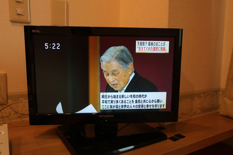 | 天気予報を確認しようとテレビを点けると天皇陛下が訓示を述べていた。そっか、今日は平成最後の日だった。平成も色々あったなあ、と少し感傷的に。 |