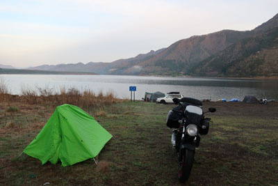 朝起きてテントを出ると天気はすこぶる快晴。今日も気持ち良く走れそうだ。 |