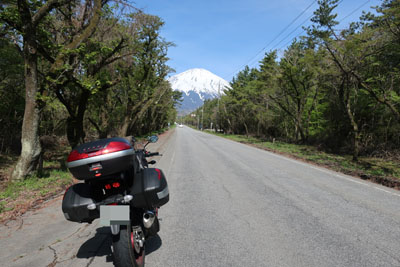 左側は自衛隊の演習場(東富士)らしい。全国をツーリングするたびに日本には多くの自衛隊の演習場があることを思い知る。かなり広大な土地だ。 |