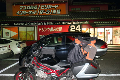 | 東海市で彼と別れたあと、適当に宿泊先を探して辿り着いたのが四日市市の自遊空間。ホテルは相変わらず空いていないし、時間が遅くなるとキャンプはできないので行きつく先は結局インターネットカフェ。(ネットカフェは本当に1人旅の強い味方!) |
