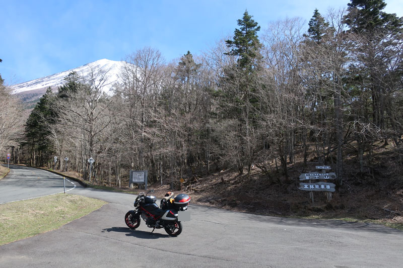 富士山スカイラインの大鉢駐車場にて。ずっと快走路で写真を撮ろうと思ったけど、なかなか写真を撮るスポットが見つからずにこの駐車場に停車してみたが、木が邪魔をして富士山が見えないね。 |