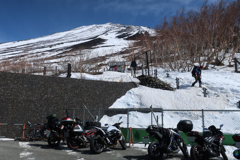 富士宮口五合目はクルマやバイクで来れる日本の最高地点で標高2380メートル。(以前は乗鞍スカイラインが2700メートル以上あったらしいんだけど、ボクがツーリングを始める前からマイカー乗り入れ禁止になってしまった) ここは雲の上より高いことがあるらしいから、下が雨でもここだけ晴れというのもあるのではないだろうか。 |