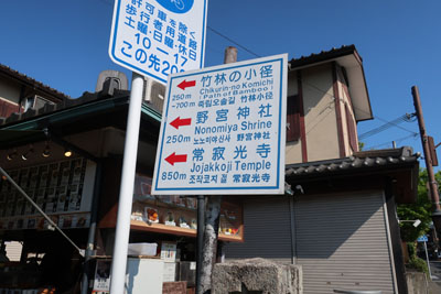 今回、嵐山に来た目的は渡月橋ではなく、竹林の小径を見たかったから。渡月橋から歩いて5分ぐらいで入口へ。 |