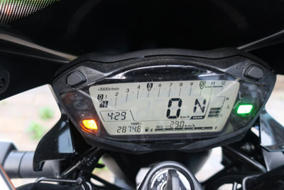 エンストしたタイミングで完全にバランスを崩して車体を支え切れずにガッチャーンと横倒し。人生初の立ちごけでバイクが傷ついてしまった・・・。 |