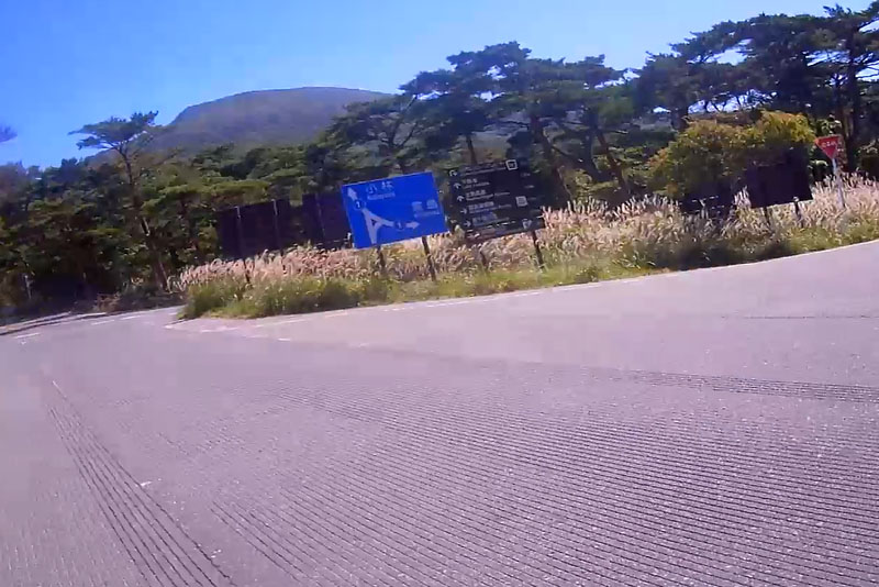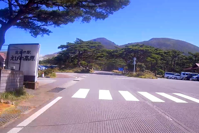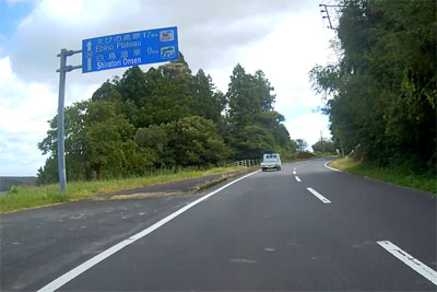| えびの高原頂上から小林方面と霧島方面に分岐する交差点があるが、小林方面は現在、新燃岳(しんもえだけ)噴火の影響により通行止めらしい。必然的に霧島方面へ。 |