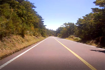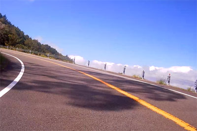 | えびの高原をグングン上る。この辺りを走るのは何年振りだろうか。7~8年振りぐらいか。かなり高い位置に来たからか空も雲がほとんどなくなって快晴。とても日本に台風が近づいているとは思えない雰囲気。 |