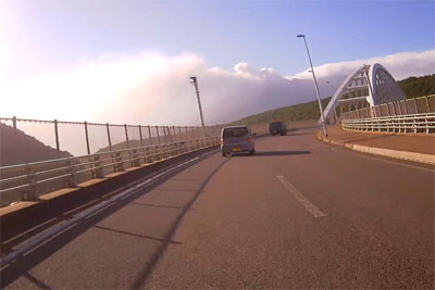そしてトラス橋が見えてきた。いよいよ桜島に入る。 |